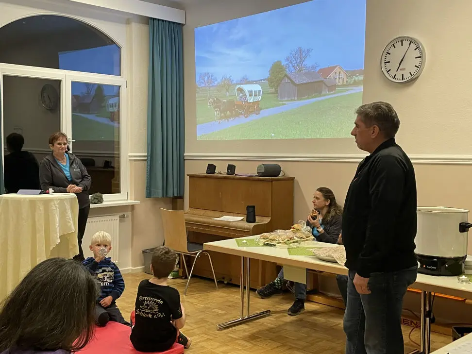 Am vergangenen Freitagabend haben die Pferdefreunde Oberreichenbach e.V. und der Ortsverein Igelsloch e.V. zum Bildervortag "Mut zum Abendteuer" von Frau Franziska Liebelt und dessen Tochter Nicole in das Begegnungszentrum Igelsoch eingeladen. Zu Beginn des Vortrags, haben die beiden Vorstände Herr Jürgen Lampacher - erster Vorsitzender des Ortsvereins Igelsloch e.V. und Frau Franziska Liebelt - erste Vorstandsvorsitzende der Pferdefreunde Oberreichenbach e.V. alle Gäste herzlich begrüßt. Die Freude war groß, über den regen Zulauf und das große Interesse an dieser besonderen Veranstaltung. Sogar aus Rottenburg kamen Zuhörer in den Bürgersaal nach Igelsloch angereist. Frau Liebelt referierte über Ihre wildromantischen Planwagenfahrten und vertiefte die Eindrücke, durch spannende Fotos und Filme. Hierbei schlug nicht nur jedes Pferdeherz höher. Ihre individuelle Planwagenreisen mit ihren beiden Pferden quer durch Deutschland von Baden-Württemberg bis nach Niedersachen in die Lüneburger Heide oder nach Bayern an den Chiemsee, begeisterte die Zuschauer. Auch über viele kleinere Planwagenausfahrten, mit Jung und Alt direkt von zu Hause gestartet, konnte sie inspirierend und unterhaltend erzählen. Wobei vor allem der Spaß auch für die Kleinsten, nicht zu kurz kam. Hierbei hatten nicht nur die Kinder eine unvergessliche, abenteuerliche und ereignisreise Planwagenreise, sondern alle zusammen genossen diese Art zu Reisen.